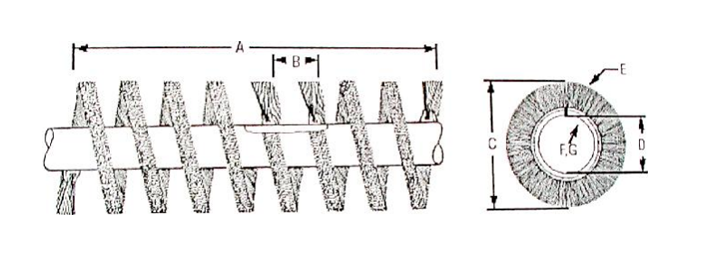 Industrial channel strip cylinder brushes are made by mounting coil wound and strip brushes on cores. Although a wide range of choices are available, they are the most over-recommend type of brush made. In very few applications are a mounted coil strip brush the cylinder brush of choice. A tufted brush does a much better job in most applications, especially in cleaning applications and perforator back-up applications. The style of a strip cylinder brush only allows for filament movement in two directions as compared to four directions for a tufted brush. Companies often recommend a strip because that is what they make, and not what is best for the job. But in some applications they do a good job, especially in jobs requiring a wire filament.
